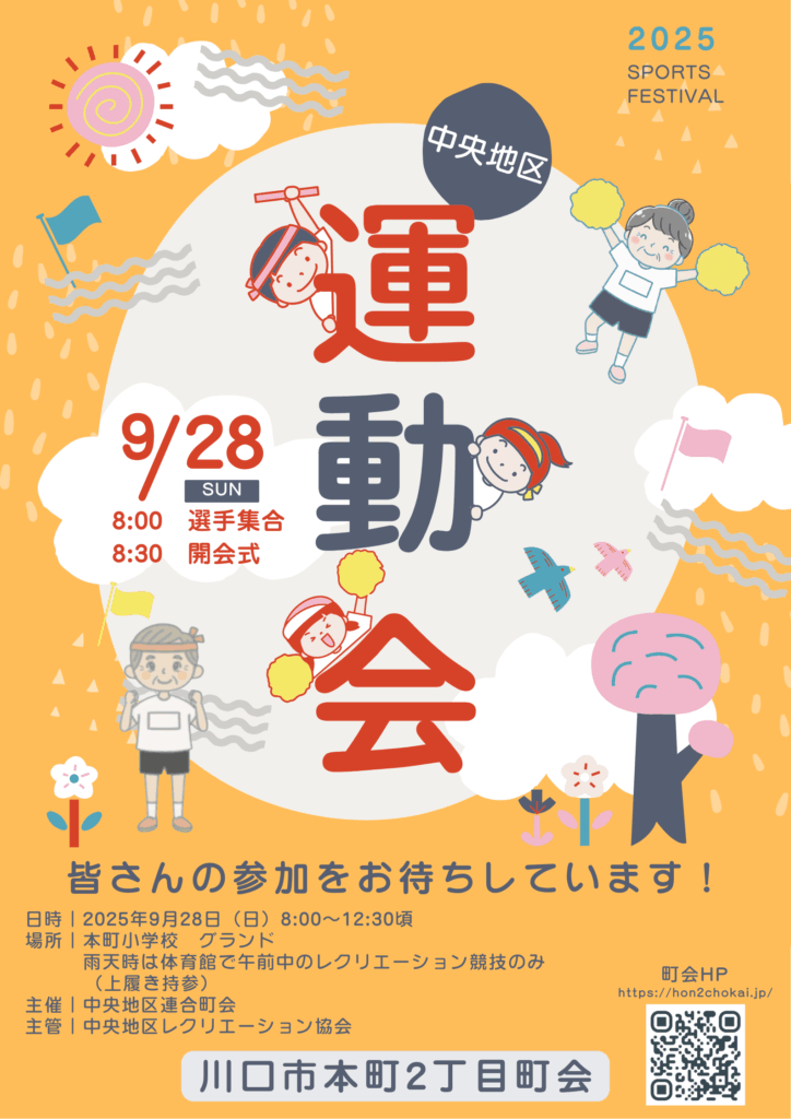 イベント9/28(日)は中央地区運動会があります。